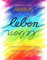 Der Herbst 2017 steht für das Ensemble ganz im Zeichen des Chorjubiläums - es ist der Anlass für ein außergewöhnliches Konzert. Unter dem Leitwort „leben“ werden die Arnikas bei ihren Konzerten in Elsenborn und St.Vith deutsche und internationale Lieder zu Gehör bringen, die das Leben mit all seinen Höhen und Tiefen besingen. Lieder, die von Fest und Frohsinn reden, von Jungsein und Altwerden, von Freundschaft und Liebe, von Himmel und Erde, von Krieg und Frieden. "Ein facettenreiches Konzert, mit fetzigen und mitreißenden Stücken, aber auch mit nachdenklichen und emotionalen Songs, die berühren und unter die Haut gehen", ist sich Walter Dahmen sicher.