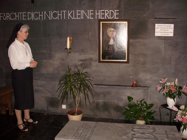 „Die Ordensperson findet nur darin ihre Freude und ihren Trost auf Erden, worin ihn die heiligen Stifter fanden: in dem Vergessen ihrer selbst, in der Selbstüberwindung und Selbstaufopferung…, lassen wir es uns niemals gereuen, uns dem Bußleben im Orden gewidmet zu haben. Hier auf Erden ist der Ort, wo wir uns den Himmel verdienen sollen dadurch, dass wir mit den uns vom lieben Gott verliehenen Talenten andere hinzugewinnen.“ Dies schrieb Mutter Elisabeth, geborene Josephine Koch, die Gründerin der Franziskanerinnen von der Heiligen Familie, einst ihren Schwestern.