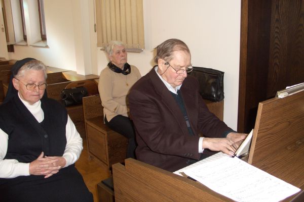 Peter Wirtz an der Orgel im Franziskanerinnenkloster Jungfrau der Armen in Bütgenbach