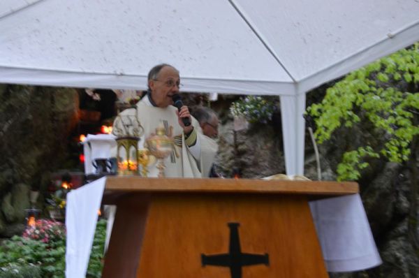In diesem Jahr nahmen etwa 250 Christen aus dem deutsch-belgischen Grenzgebiet am Morgen des 1. Mai - um sechs Uhr in der Frühe - an der festlichen Eucharistie teil. Die Statue im Felsen war erhellt vom Schein der ewigen Lichter, einige Menschen zündeten noch eine Kerze an. Die Stadt Monschau hatte wieder ein großes überdachtes Podest vor der beeindruckenden Mariengrotte errichtet.