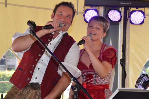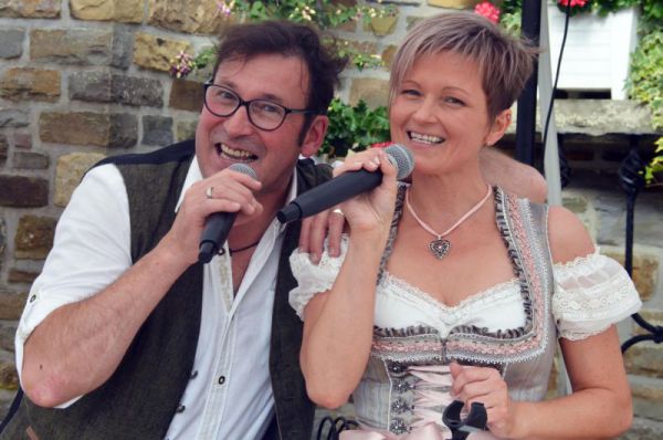 Tanja Mayer: Wir passen das Programm jeweils individuell an. Je nach Dauer, Alter des Publikums und Art der Festlichkeit, bemühen wir uns, allen Wünschen gerecht zu werden. Bei einem Repertoire von ca. 130 Liedern, die wir live singen, haben wir einiges an Auswahl zur Verfügung, um das Programm vorzubereiten, sind aber auch für spontane Musikwünsche offen. Bei einem Auftritt von fünf Stunden, wie auf dem Bütgenbacher Urlaubermarkt ist natürlich von allem was dabei, wobei wir aber, als eine Gruppe aus dem Seniorenheim ankam, kurzfristig alte Lieder einbauten, um ihnen damit eine Freude zu machen. Für das Gartenfest im Seniorenheim Bütgenbach passten wir das Programm natürlich auch dem Alter des Publikums an, und es war für uns sehr schön anzusehen, wie demenzkranke Leute zusammen mit kleinen Kindern im Kreis schunkelten oder sogar dank des lieben Personals ein wenig tanzen konnten.
