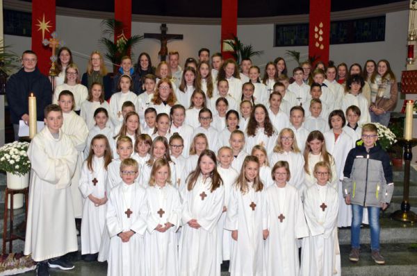 Am Christkönigsfest, Samstag, 23. November 2019, 18.00 Uhr, empfangen in Nidrum 19 Jungen und Mädchen (Jg. 2010) unseres Pfarrverbandes die Ministrantenweihe.Zu diesem Fest haben sich (bisher) 70 Ministranten des Pfarrverbandes angemeldet, anschl. findet wieder das Festessen im Pfarrheim Weywertz für alle Messdiener(innen), auch für die „Pensionierten“ statt.