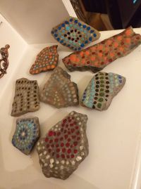 Da sind zum Beispiel die „Schlangen“ aus bunt bemalten und dekorierten Steinen, die man überall sieht.